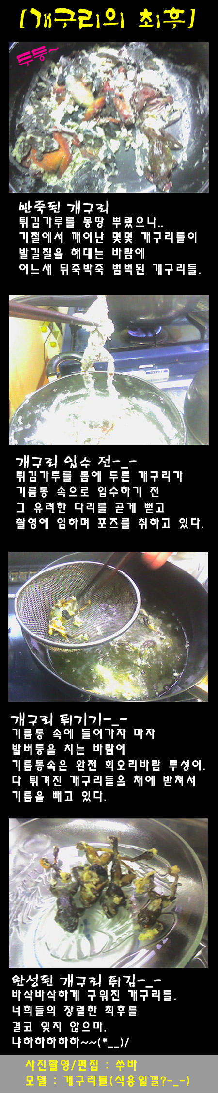 개구리들이 튀겨지는 과정을...