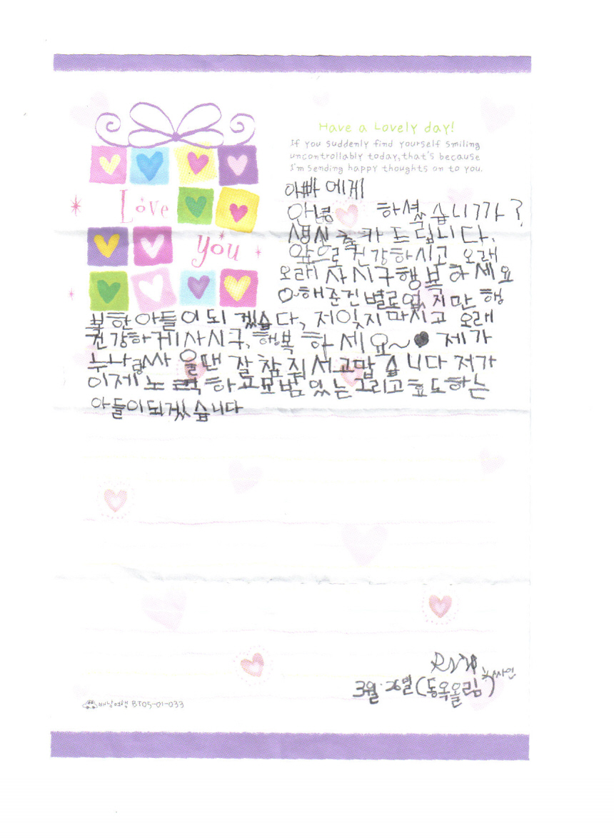 아들래미의 정성이 가득한 편지한장~! ㅋㅋㅋㅋ