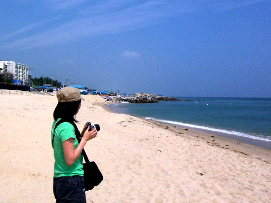 살랑살랑 바닷바람 맞으며 사진을 찍고 있는 그녀를 발견 ㅇ.ㅇ;