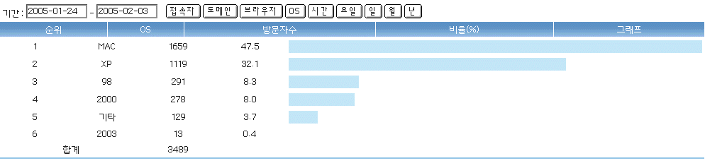 각 OS그래프입니다. 맥으로 오신분들이 47%정도네요...