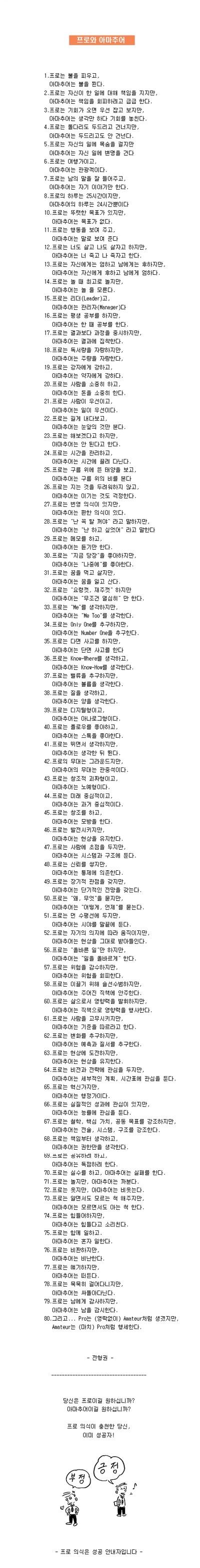 의욕이 막 솟구치다가 읽을수록 의욕상실....ㅡ.ㅡ 지친다 지쳐 프로, 그까이꺼 걍 열심히 하면 되는거지..ㅋㅋㅋ