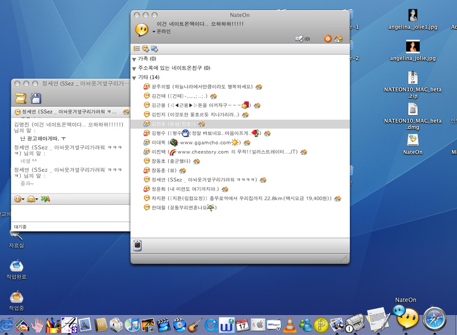 전 맥에선 엠에센..글구 옆에노트북에선 네이트온..이렇게..멀티루다가..~~ (일은언제하는겨?ㅋㅋㅋㅋㅋㅋ)