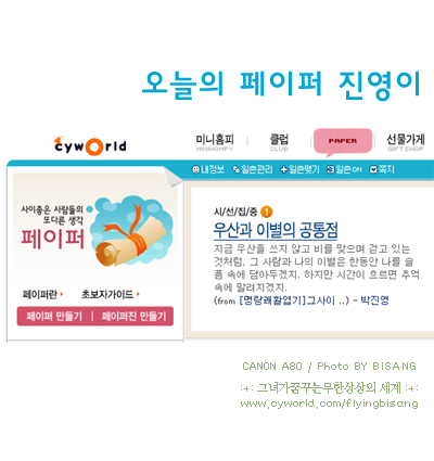 여러분 저 오늘에 페이퍼로 싸이월에 페이퍼 페이지 메인에 시선집중코너에~ 와기분 좋다