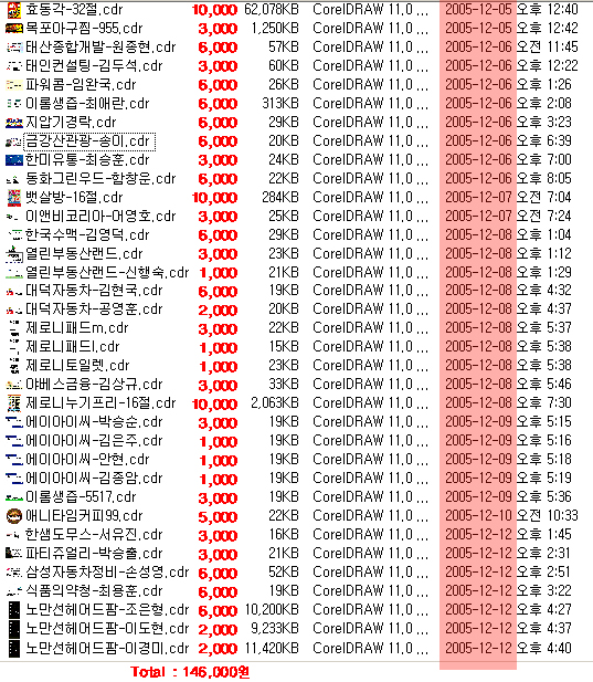 3,000원씩 작업비가 14만 6천원이 되게 일을 시키고