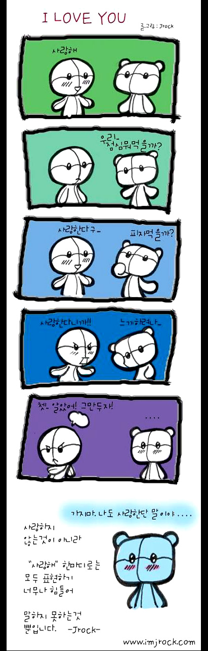 처음엔 사랑이란 말을 하기 어색하지만 여러번 하구나면 쉬운말이 사랑이란 말이랍니다.