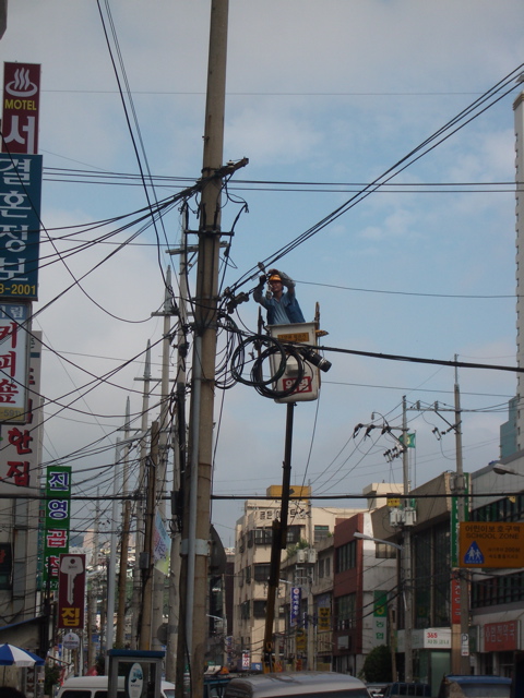 전봇대 올라가는거....무지 위험해요.. 더워서 땀흘리다가..땀땜에 감전되는 경우도 봤어요...ㅠ_ㅠ