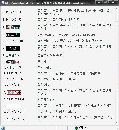방장님은 로긴해도 접속자 명단에 안보여여.. ^^