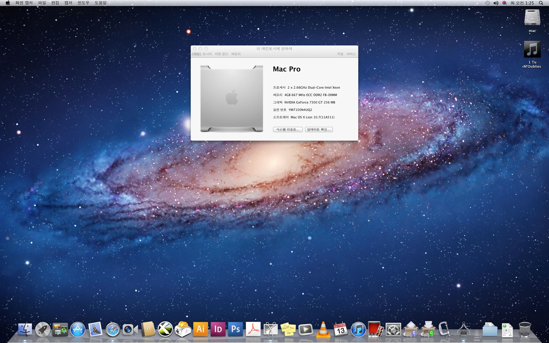 1. 맥프로 인텔제온 2.66Ghz xeon 2코어 x 2 (쿼드코어)