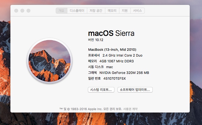 힌지크랙없음-배터리새것-거의 사용안한 키보드와 화면상태임- 2010년 맥북화이트(씨에라 설치함)2010년 화이트맥북
