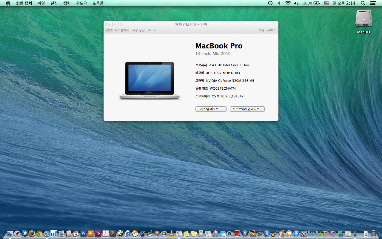 특A급 맥북프로 13인치- 맥 디자인프로그램들과 윈도우7 설치됨