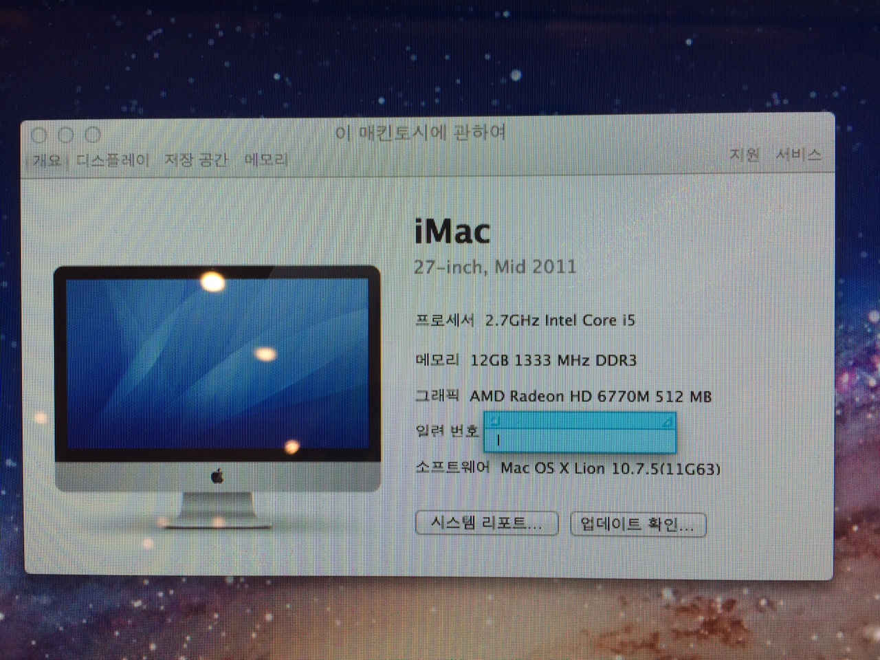 아이맥 mid 2011 27인치 (MC813) 램 12GB