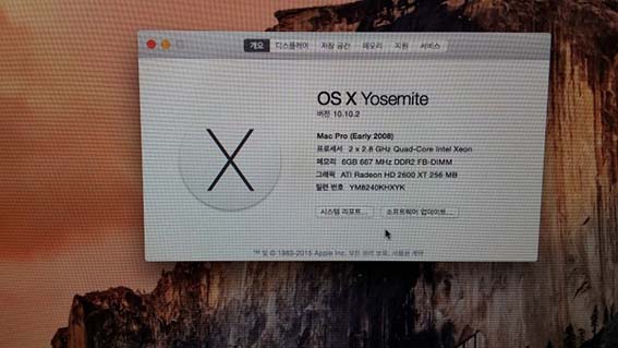 모델 식별자: MacPro3,1 Mac OS 10.10 요세미티 설치되어 있습니다.