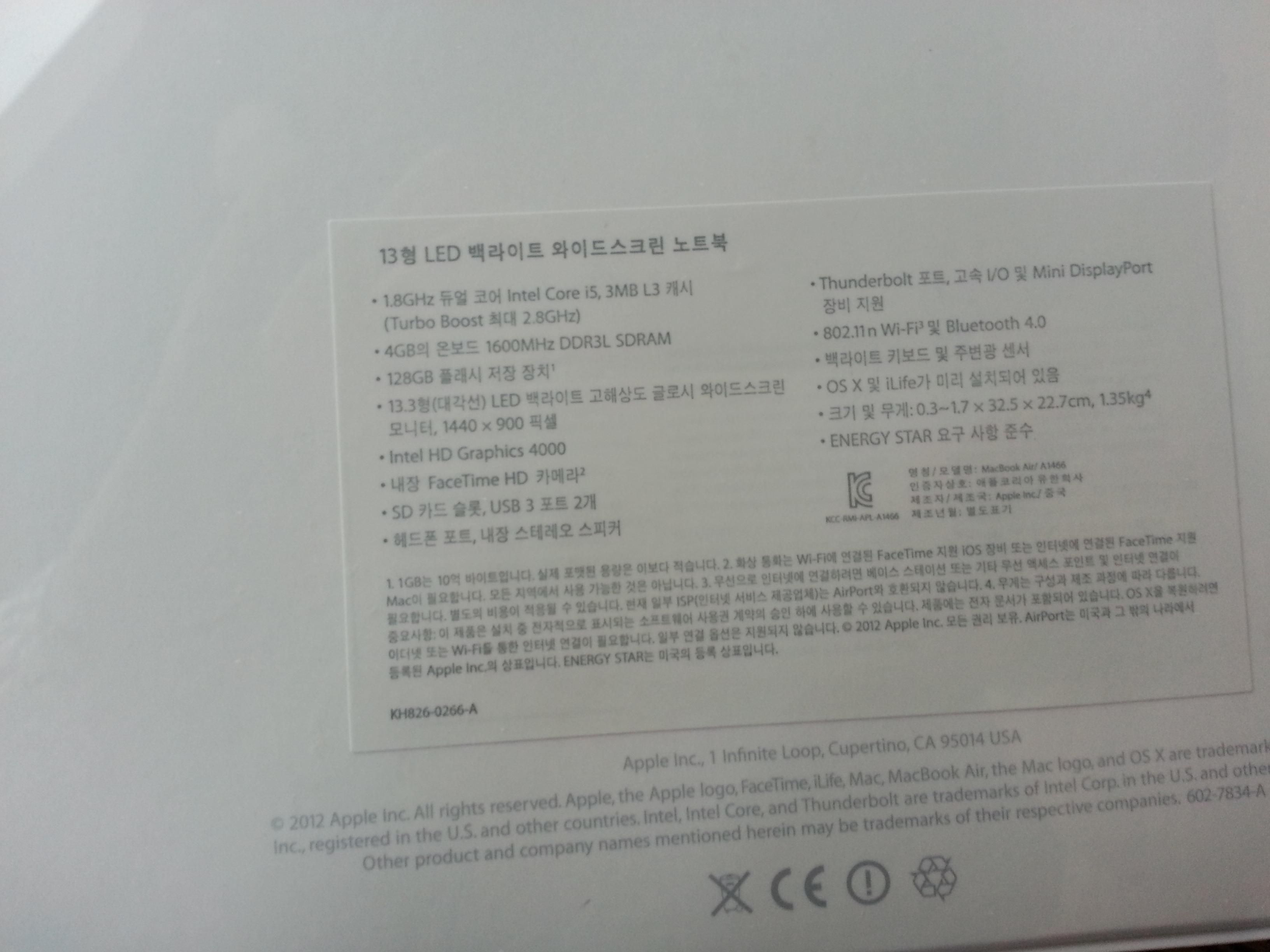 애플 맥북에어 Macbook Air MD231Kh/a 신품 판매 합니다.