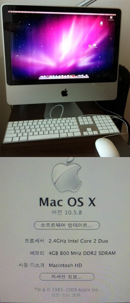 깨끗하게 사용한 아이맥 20인치 코어2듀오 2.4Ghz 모델 판매합니다