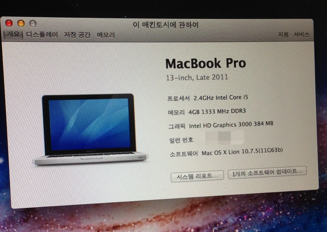 맥북프로 13 2011-late 기본형입니다.