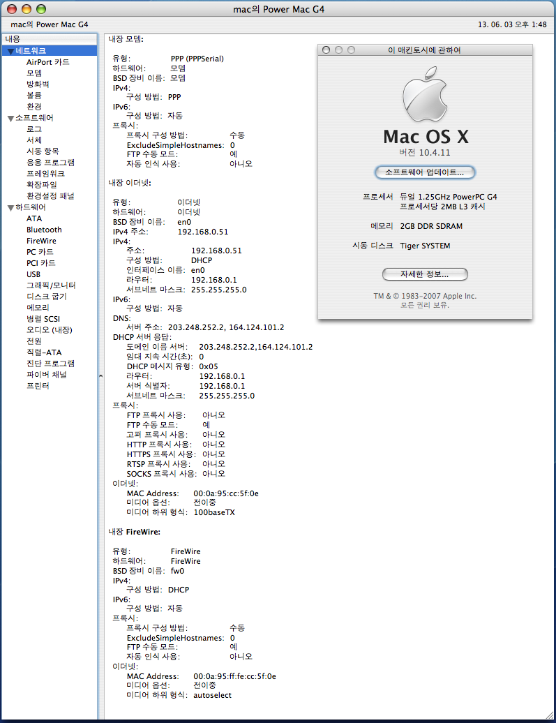 Mac OS X 10.4.11 과 9.22 개별하드에 별도로 셋팅되어