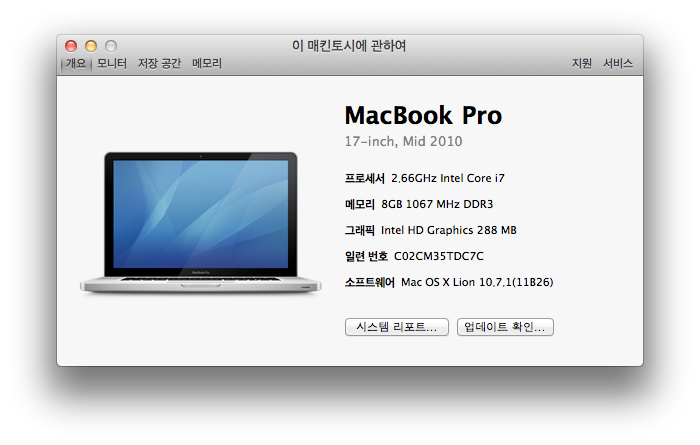 2010년 4월산 맥북프로 17인치 풀옵입니다.