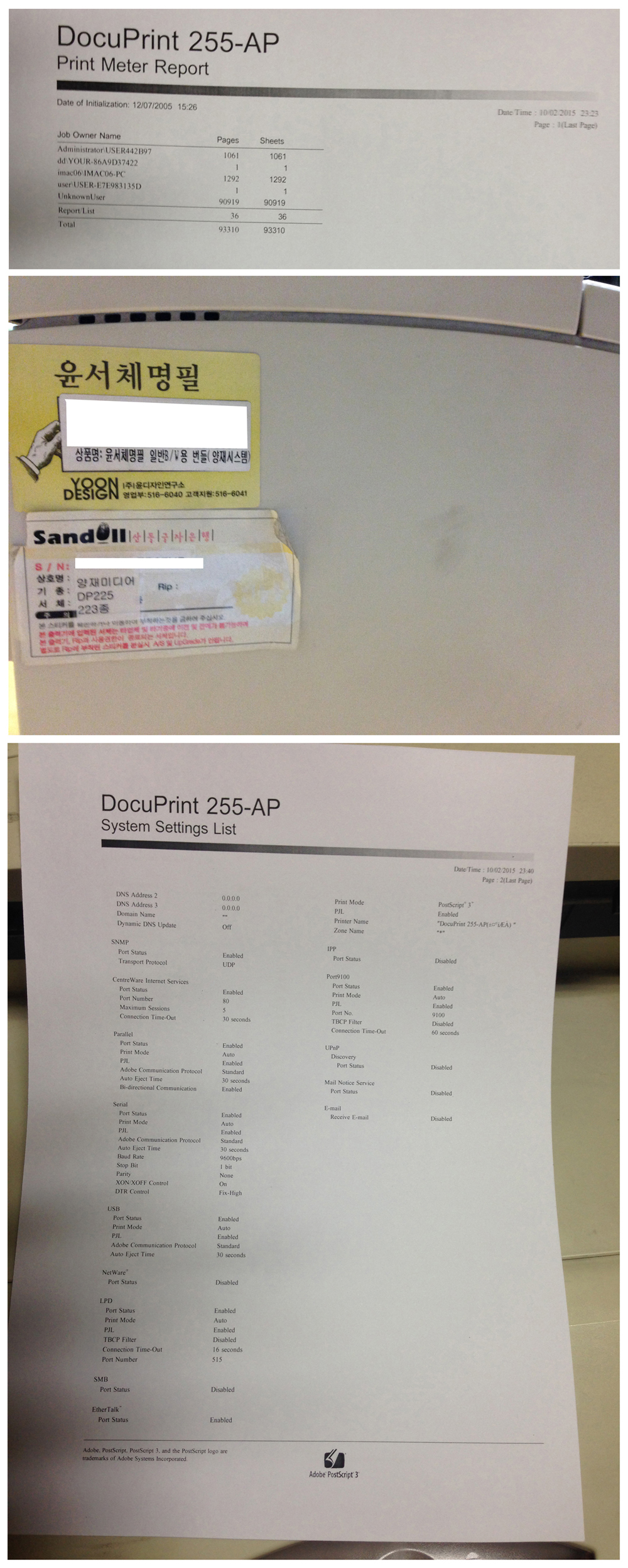 1. 물품명 : 후지 제록스 DocuPrint-255 (양재 MyLaser-2500) 프린터