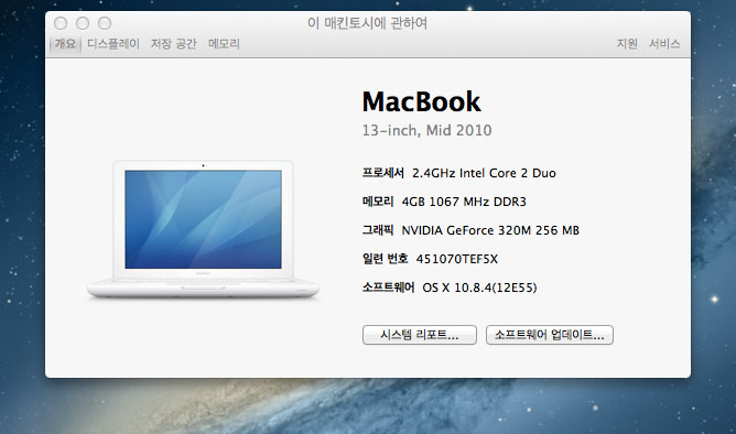 2010년 화이트 맥북 13인치- 맥 디자인프로그램들이 사진처럼