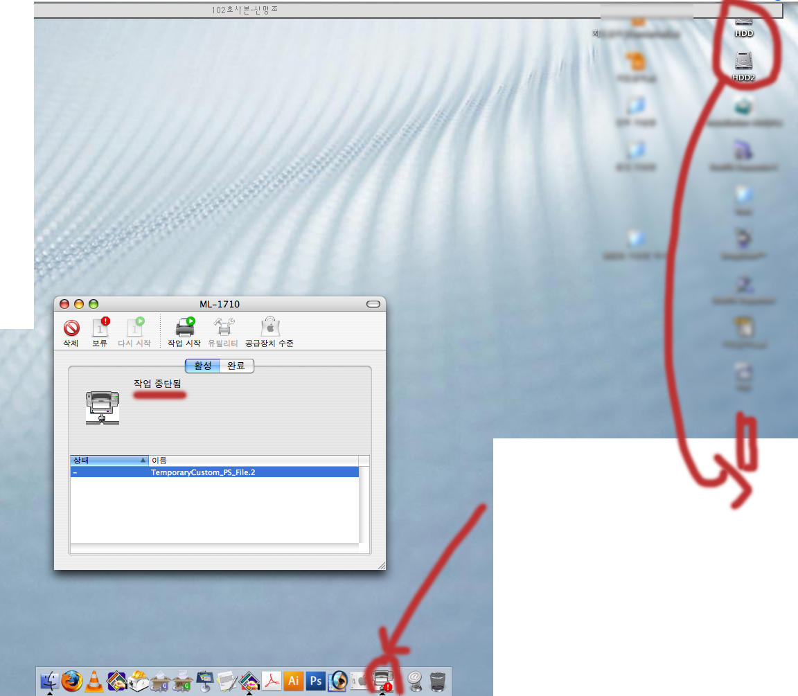 데스크탑에서 자동정렬을 하지 마시고요. 프린터 기종이 어떻게 되나요? ================ 베스트맥(아이디)를 클릭하고 자기소개를 참고하세요.