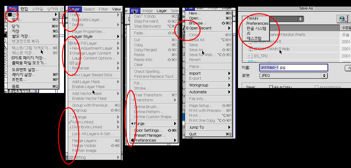 단축키가 엉망으로되구.. 원래 없었던 사진에 빨간동그라미 쳐논..
