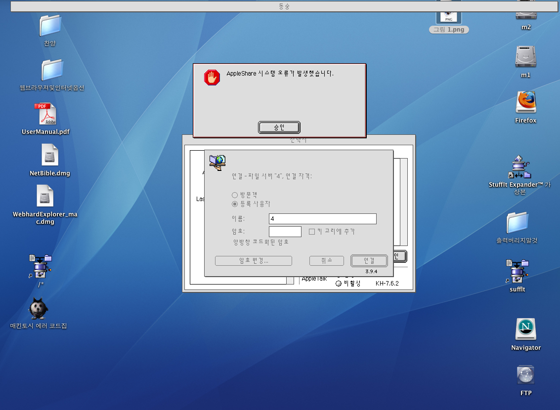 mac os x 클래식에서 그림처럼 오류가 나는데...