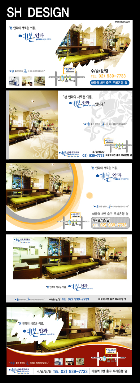 저는 3번 포맷이 젤 좋은것 같아요. 그런데 안과라는 느낌이 안 오는데요.. 왼쪽에 타원을 눈모양으로 형상화 하면 ...?? ^^;; 진료하는 사진도 있으면 좋을텐데요~~ 전체적으로 정돈이 잘 된것 같아요~~