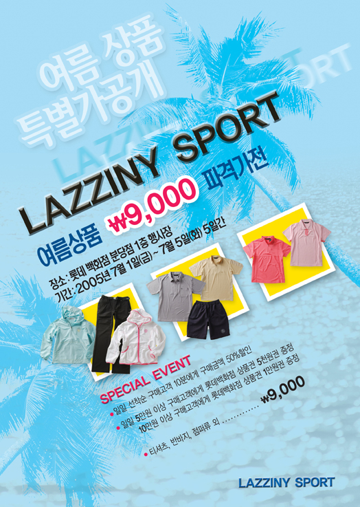 저도 옷이 바람부는 듯한 느낌인 것이,,,구겨진 게 나름대루 좋은거 같슴미다,, 배경색도 시원해 보이고,,여름가 특별가공개란 타이틀도 옅게 깔려서 시원한 밸런스가 맞네요,,, 가격과 상표가 강조되면 타이틀은 굳이 눈에 띄지 않아도 될 것 같슴미다,,,시원한 컨셉으로 효과를 잘 나타내신 듯 함미다,,